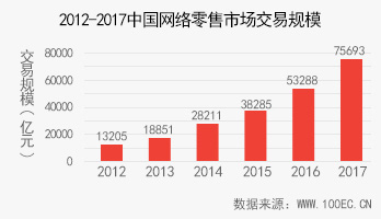 预计2017年全年中国网络零售市场交易规模有望达75693亿元。
